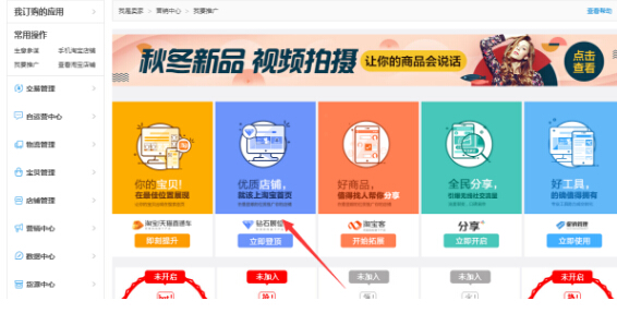 通过此图,发现这家店首页的转化比搜索高很多,所以可以针对首页进行开始进攻,主要利用一个工具:钻石展位,为什么不是选择直通车,原因在于钻展的定向人群可以更细分,操作步骤如下: